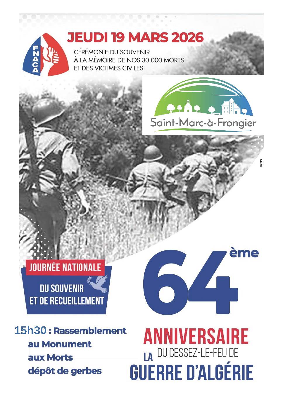 Vous êtes invités à la commémoration du 64ieme anniversaire du “Cessez le feu” de la guerre d’Algérie.